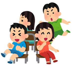 椅子取りゲームは人数分より1つ少ない椅子を用意し曲に合わせて周回して曲が止まった時に椅子に座ります。