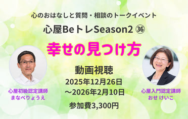 世の中から不機嫌な人を一人でも減らし、問題を簡単に解決する心屋メソッドをお伝えするトークイベントです。